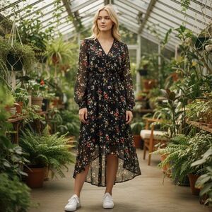 Who What Wear Black Floral Hi/Lo Handkerchief Feminine CottageCore Dress L