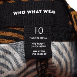 These Who What Wear pants bring a bold statement with their intricate black-and-gold chain print and dramatic wide-leg silhouette. Designed in a breezy rayon blend, they flow effortlessly with each step, capturing that palazzo ease while keeping the look polished and chic. Perfect for styling with a fitted top or blazer for a night out, or pairing with a simple tank and sandals for daytime glam. Womens size 10.