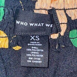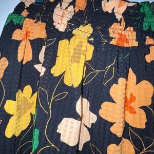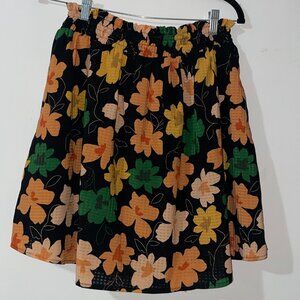 Who What Wear Black Orange Peach Gold Yellow Floral Elastic Waist Skirt Size XS