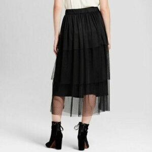 Who What Wear Black Polka Dot Tulle Tiered Ruffle Midi Skirt