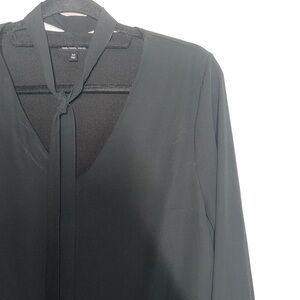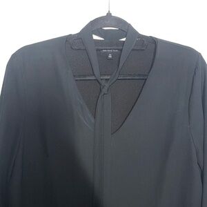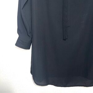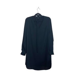 Who What Wear black tie neck shift dress. In excellent condition! V neckline. Tie neck accent. Long sleeves with button cuffs. Round bottom hemline. Effortless shift style. Knee-length. Fully lined. True black color. Size medium.