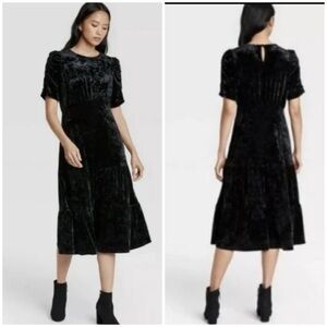 Who What Wear Black Velvet Dress Size Small Midi Short Sleeve Party Holiday