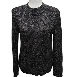 Who What Wear Black and White Knit Pullover Sweater Crew Neck