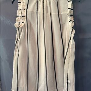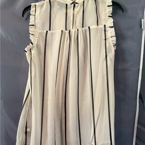 WHO WHAT WEAR blouse cream with bold black stripes. Perfect for versatile styling. Ruffle trim and neck detail. New without tags. Lost tags! Never worn or washed. Smoke free storage.