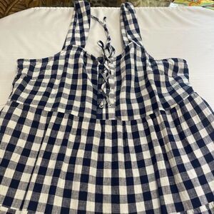 Who What Wear Blue White Picnic Gingham Linen Dress Size XLP XL