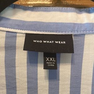 Who What Wear Blue and White Striped Button Down Shirt