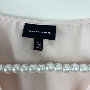 Who What Wear Blush Pink Ruffle Peplum Long Sleeve Silky Top in size XS. Super soft. Excellent cut and flattering.