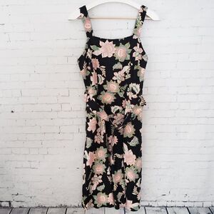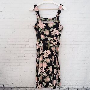 Who What Wear Boho Linen Blend Black Floral Dress S With Belt A-Line Square Neck