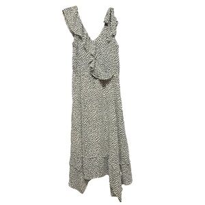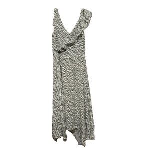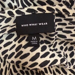 This stylish sundress by Who What Wear showcases an asymmetrical neckline and flutter sleeves, ideal for casual outings. The black and cream colors enhance its flowing silhouette, providing both elegance and comfort. Its sleeveless design ensures a breezy and relaxed fit.