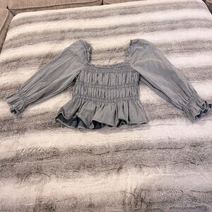 Who What Wear Chambray Crop Ruffle Puff Sleeve Blouse
