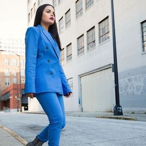 Cobalt blue power suit by Who What Wear. Size Small jacket, Size 2 pants. Excellent condition, I used this once for a photoshoot!