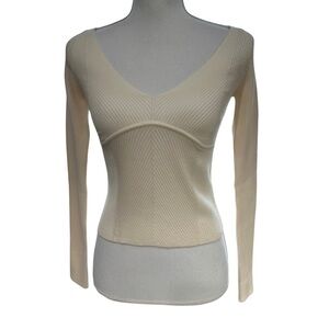 Who What Wear Collection Anneliese Herringbone Long Sleeve Top Ivory SZ M NWT