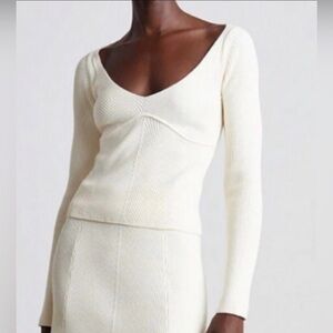 Who What Wear Collection Anneliese Herringbone Long Sleeve Top Ivory SZ M NWT