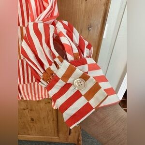 Who What Wear Cool Striped Button Down Shirt W/Statement Sleeves Like New Size L