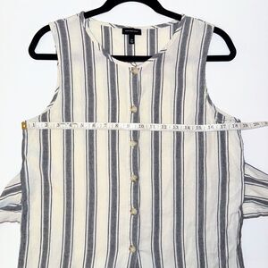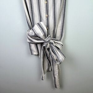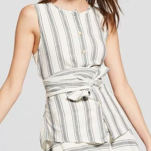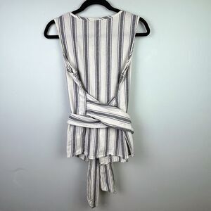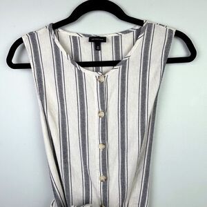 Who What Wear Cotton Cream & Blue Striped Sleeveless Button Down Wrap Belt M EUC