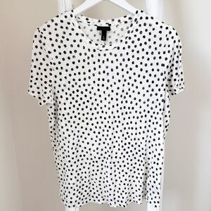 Who What Wear Cream and Black Polka Dot Linen Blend Short Sleeve Shirt Sz L