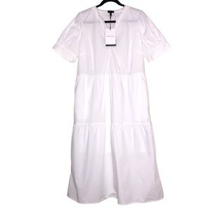 Who What Wear DemiTiered White Puff Short Sleeve Dress w/Pockets Size Large