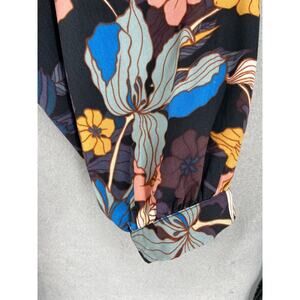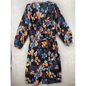 Who What Wear Dress 3X Wrap Blue Floral Ruffle Long Sleeve Midi Waist Tie Career