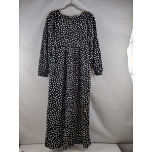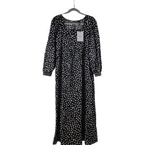 Who What Wear Dress Black Polka Dots XS Square Neck Maxi Pocket Loose Fit Midi