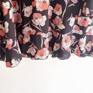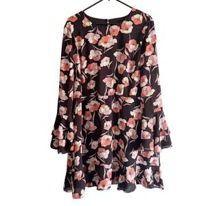 Who What Wear Dress Size L Black w/ Pink Cream Orange Floral Pattern Bell Sleeve