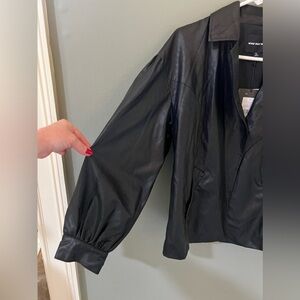Who What Wear Faux Leather Jacket small NwT Black Open Biker Sweater Wide Sleeves