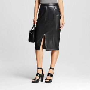 Who What Wear Faux Leather Split Front Pencil Skirt Black Size 8