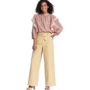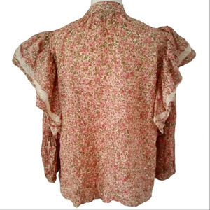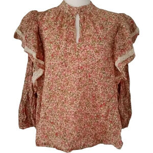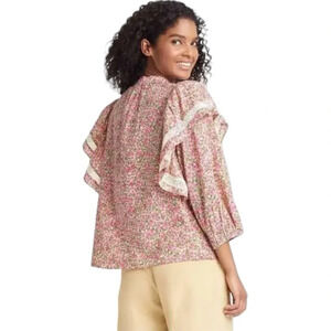 Who What Wear Floral Peasant Top Exaggerated Shoulders Button Neck Size Large