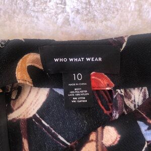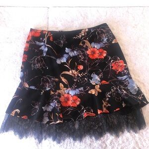 Who What Wear floral Mini skirt with a layer of lace peeking out from underneath a ruffled hem, back hidden zipper closure