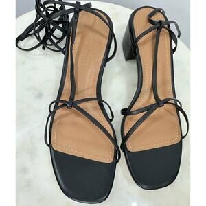 Who What Wear Genesis Block Heeled Sandal – Black Smooth Leather – Size 6