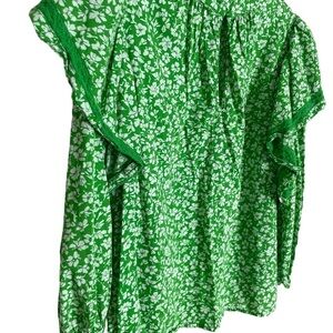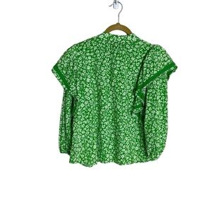 Who What Wear Green Ditzy Floral Ruffle Blouse Small