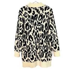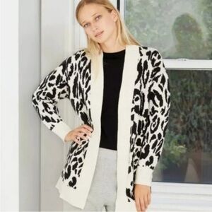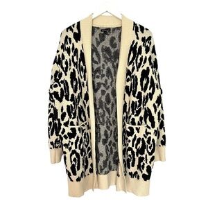 Who What Wear Leopard Print Chunky Open Cardigan Cream Black Size L