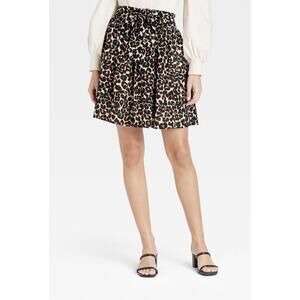 Who What Wear Leopard Print Mini Skirt with Tie Waist Elastic Back Animal Print Size 4X