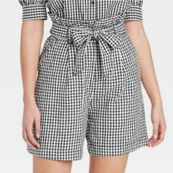 Who What Wear Linen Gingham Paperbag High Rise Shorts Plaid Checkered 10