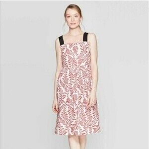 Who What Wear Linen Sea Tropical Dress White Red Coral Sundress Size XS NWT