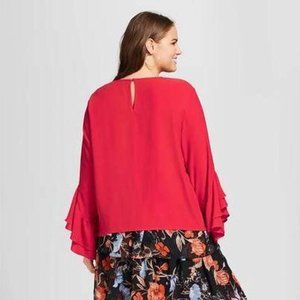 Who What Wear Long Sleeve Red Ruffle Top Size Large