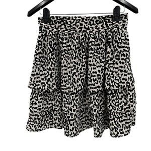 Who What Wear Medium Mini Skirt Black Ivory Leopard Print Tiered Casual Short