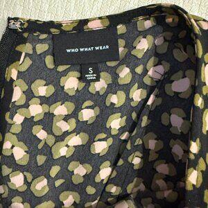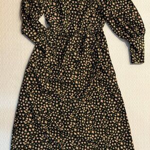 Gorgeous animal print dress with button sleeves and a zip closure.
