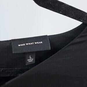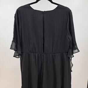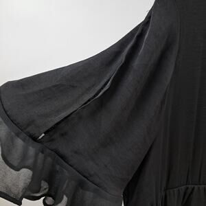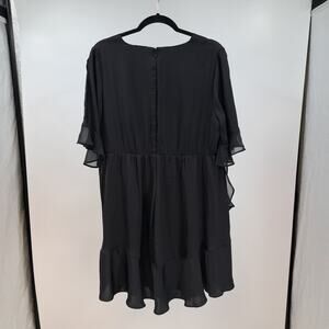 Who What Wear Mini Dress L Flutter Keyhole Sleeve Chiffon Ruffled Tiered Solid Black Casual summerdress summer flowy loose fit