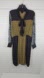 Chic long sleeve dress with a stylish bow tie. Features a mix of black, yellow, and cream patterns. Perfect for versatile wear.