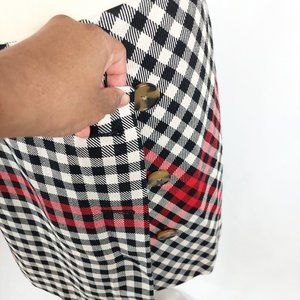 Who What Wear Multicolor Gingham/Checkered Skirt. Size 12. Skirt unwraps and has three vertical button closure and hidden clear button on internal waist. Colors are red, black and a off white to cream-like color (not a bright white color). 71% polyester, 29% rayon. Measurements are approximate. Skirt in good preowned condition.