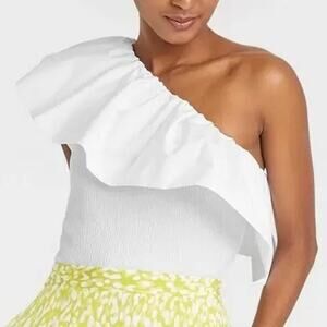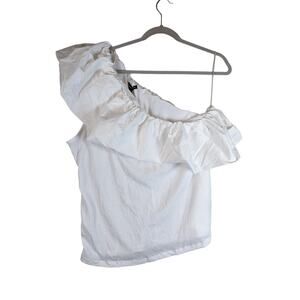 Who What Wear One Shoulder Blouse Ruffle Sleeveless White XXL Casual Pullover