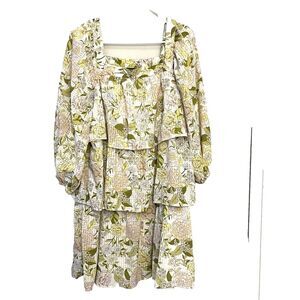 Who What Wear Pastal Floral Dress Women Medium Ruffle Cottagecore Yellow Tiered