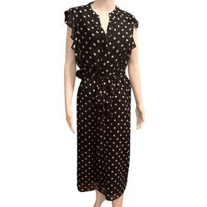 Who What Wear Polka Dot Flowy Belted Flutter Sleeve Midi Dress Sz M Black White