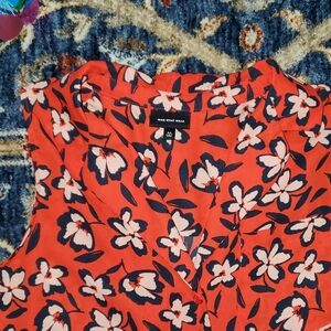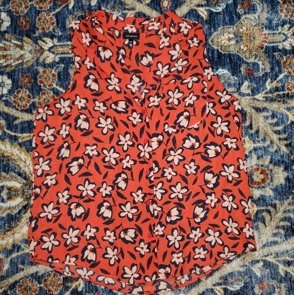 Who What Wear Red Sleeveless Blouse with Mandarin Collar