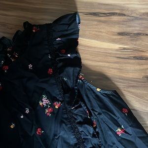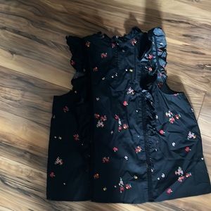 Black Who What Wear ruffle tank. Flower patterns and keyhole back neckline