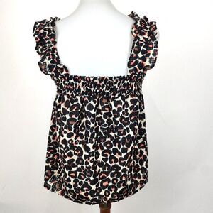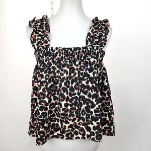 Who What Wear Ruffle Smocked Swing Tank Top Leopard Print Womens Size M