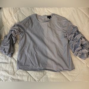 Who What Wear, size M blouse with ruffled puff sleeves slightly cropped. Good condition. Thin blue and white stripe like a dress shirt.