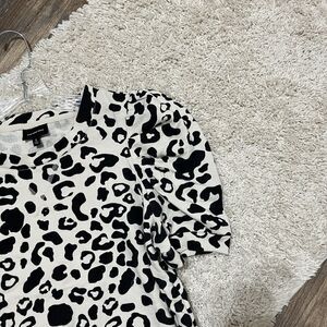Beige and black, leopard print, crewneck, pullover, short puff sleeves