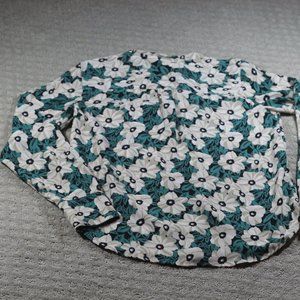 Beautiful floral green and cream blouse by Who Wore What. Two pockets, button down. Excellent preowned condition - like new.
