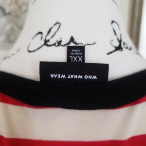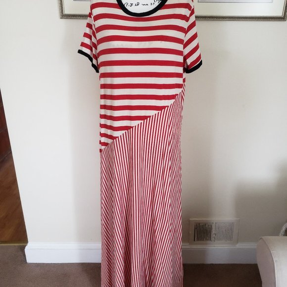 Red and white stripe maxi dress with black ringer accents around the neck and sleeves by Who What Wear. Size XXL. Barely worn.